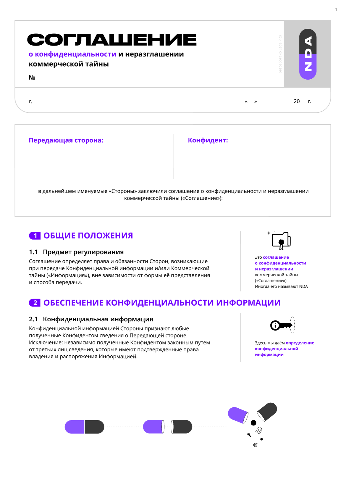 Наши документы разработаны с применением подхода legal design: они юридически корректны и при этом удобны, наглядны и приятны взгляду. В качестве приложения мы предлагаем комикс-договор, который разъясняет нормы договора на примере возможных ситуаций.